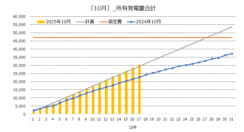 今月の発電は、順調 2025年10月19日 (カテゴリ: コンサル, 太陽光, 投資) ツイート 昨年比での発電を比較すると 本日時点での発電量は 2024年;22,746kw 2025年;29,407kw 実に、1.29倍です。 単純に、3割増しで入金が あると言う事になります。 今月下旬から晴れ間が続かない予報です どうなるかは、分かりませんが 昨年よりは良い傾向かもですね。。。 でわでわ。ほなさいなら。 ブログランキング « 前の記事へ ツイート 関連記事 3月の発電量は昨年並み 当方は、発電所を6基所有し その内5基は、九州にございます。 抑制で発電量を制御されてまして 本当だったらボーナスシーズン 記事を読む 抑制続きの九州地区 今月に入り 既に、9回の抑制が発生しており 更には、天候の良くないため 発電も30%マイナスでございます。 さてさて 記事を読む 給与額面以外の与信枠は本当だった説 結果論になってしまいますが 産業用のソーラーローンですが ・源泉徴収 ・確定申告 どちらでも、与信枠を確認できると推 記事を読む 3月発電途中結果 まだ、気が早いですが 過去最高の発電となりそうです。 6基目が稼働している事も有りますが 運よく?天候が素晴らく調子が良い 記事を読む 9月の月間売上過去最高 法人での月間売り上げが過去最高を たたき出しました。 いやー嬉しいです。 不動産の家賃収入 太陽光の売電収入 記事を読む 34階建ての新ビル構想を凍結 名古屋三越栄店のビルの建て替え計画 建築資材の高騰やコロナ禍が影響 「名古屋三越栄店」などが入るビルの運営会社が、2019年に発表していた建て替え計画を凍結したことを明かしました。 現在「名古屋三越栄店」が 記事を読む 今日は、踏んだり蹴ったり:囲繞地通行権 いやー萎えました。 常滑の発電所は、いわゆる非接道の土地 中に入るには、他人の土地を通行しないと入れません。 なので、民法 記事を読む 暑いな まだ7月が始まったばかりであるが アツくて大変である。 この暑さがまだまだ 続くと思うと気を滅入ってしまう。 で、幼 記事を読む 政府が電力需給逼迫で初の注意報 yahooニュース 政府は26日、東京電力ホールディングス(HD)管内で27日の電力需給が厳しくなる見通しとなったことから、電 記事を読む 出力抑制を実施(都内の品川火力発電所3日分?) 四国電力送配電 太陽光発電を「出力制御」へ 04月08日 23時19分 四国電力送配電は太陽光発電の発電量が増え 記事を読む コメントを残す コメントをキャンセル コメントを投稿するにはログインしてください。