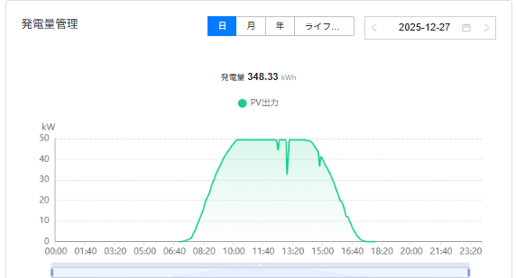 朝から良い天気で 2025年12月28日 (カテゴリ: コンサル, 太陽光) ツイート 昨日ぐらいから プリン型の発電をしており 中盤から日射量が落ちていましたが このまま突っ切って欲しいものです。 でわでわ。ほなさいなら ブログランキング « 前の記事へ ツイート 関連記事 条件が重なって大渋滞 本日、本業からの帰宅 今までは、どんなにこんでも 一時間程度でしたが なんと90分もかかりました。 給料日 金 記事を読む 今月の締め切りの固税 二期分の振込が 今月末です。 約20万。。。。 一括に支払えれば良いのですが 今年は、大きな買い物を しており 記事を読む 今月末は、決算月 法人4期目の決算です。 申告は、顧問税理士にお任せしておりますから ありがたいです。 来月より5期目に突入となりまして 記事を読む 事務所屋根太陽光発電開始 2年間ほど、お休みをしていた 発電システム 本日、運転を開始しました。 小さな量の売電ですが ここまで、電気代が高騰 記事を読む 2025世界陸上選手権大会(東京) 1カ月後に開催される 2025世界陸上選手権大会(東京) 最近は、決勝に出場する 日本人が増えてきました。 例えば、 記事を読む 市民・県民税 税額は、 給与明細と一緒に如何ほどかと、 配布されるのですが なんせ、待ってられない人ですので 先週でしたか、コンビ 記事を読む 趣味で始めた花壇 昨年ごろから少しづつ はじめた緑化。 早いもので1年半ぐらいでしょうか? 順調に育っており 休日の朝は、コーヒを飲み 記事を読む 梅雨入りですね 南九州飛ばしの 梅雨入りです。 南九州に5基の太陽光発電を投資している ものからしたら、良いのか? さてさて、この梅 記事を読む 私の与信枠は、どこまであるんだって話。 ココに来て、年収の5倍までの 借入は、出来るとか、出来ないとか。 一番有力筋で言うと 年収=サラリー額面×5 でなる 記事を読む 今度は、九州に出張で 本業が忙しくて。。。 来週には九州に 発電仲間に会いたい所ですが いかんせん。一人行動も?? と言う事で大人しくして 記事を読む コメントを残す コメントをキャンセル コメントを投稿するにはログインしてください。