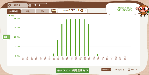 もうちょっとで400kw超え 2026年1月28日 (カテゴリ: コンサル, 太陽光) ツイート 毎年1月下旬には 両面パネルの106kwの 発電所の発電量は、 400kwを超えるのですが 今年は、どうもいかない感じです。 そろそろパネルの劣化でしょうか? とは、言ってもあと数日で 達成するので、まだ清掃まで やらなくてもよいかとは思います。 でわでわ。ほなさいなら ブログランキング « 前の記事へ 次の記事へ » ツイート 関連記事 区分マンションのテナントからの苦情 とあるマンションのテナントは 地下の飲食店が複数あって 結構大きなマンションです。 っで、以前からノミバエなどの 虫 記事を読む 今年最後の草払いが終了 感慨深いもので 1年稼働した (正確に言うと、355日) 発電所の今年最後の 草刈りをしてきました。 ついでに 記事を読む 収益1棟物件が再開されました⑦ おそらく明日に 本部の予備審査結果が 来るはず。 さてさて、どうなることやら。。。 ワクワク。ドキドキである。 記事を読む 総理が決まった 日本国の初めての 女性総理大臣の就任 気になる組閣ですが 一報ですが なんと、財務大臣に あの、元財務相官僚の 記事を読む ぉおー。売却価格が上回った 今回も、太陽光とはお関係がございません。 自宅のポストには 不動産を売って下さいと DMが来るんですね~。 購入価格 記事を読む 利回りにこだわるのか、収支にこだわるのか 所有する発電所は もちろんローンで買わさせていただいております。 CFも多少は出るんですね。 表面利回りが9.6%程度。 記事を読む 融資借換面談は、何をもっていくか ついに面談までこぎつけました。 本当は、自宅近くまで来ますっと おっしゃったのですが、印象? 良くするため、こちらから 記事を読む 今月もアフリエイトのご入金が ありがたやー今月も入金がありました。 かれこれ5年目に突入しているのですが 毎日、毎日、良く書けるもんだと 思っています。 記事を読む ルームエアコン 本日、大手の家電量販店に行ってきました。 色々と調べてみると 欲しかった機種は 最上級グレードですが そもそも寝室用 記事を読む 大阪に行ってきます 日帰りですが大阪に出向きます。 昨年にも行きましたが 明石焼きを食べ損ねたので 今回は、がっつりと食べてきます。 で 記事を読む コメントを残す コメントをキャンセル コメントを投稿するにはログインしてください。
