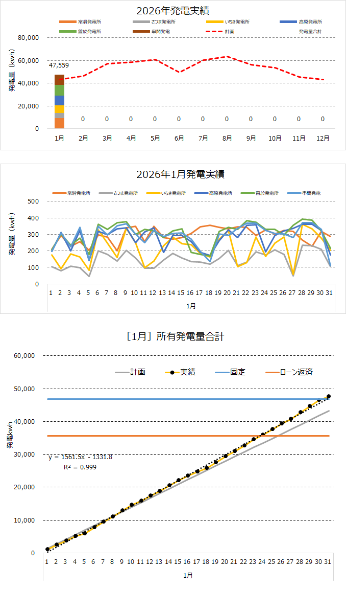 それぞれの発電所の発電量