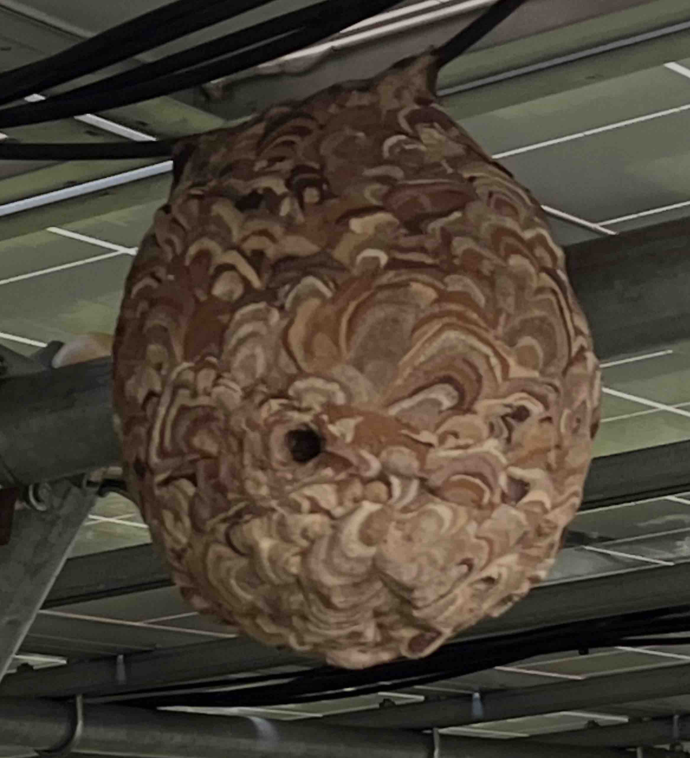 もうきた 2026年4月3日 (カテゴリ: 未設定, 設備の管理) ツイート っと思ったら、昨年できた巣だった。 いつ作ったんだろう?秋の除草の時はなかったと思うんだけど。 念のため、蜂スプレー噴射してから撤去しました。 近年発電所で蜂によく遭遇します。ここは1年で3回ぐらい巣を発見する。 以前は全然見なかったのに。これからも注意しながら管理していこうと思います。 « 前の記事へ 次の記事へ » ツイート 関連記事 リパワリング? どれだけ効果があるか?ですが。 すごく眩しいシート。期待してみます。 すぐ汚れたり、破れたりする懸念あり。 草抑えにはなるから 記事を読む 安全第一を忘れずに 自主管理しやすくしと思い、どんどん道具が増えていく。 刈払機、乗用草刈機、バックホー、軽トラなど。 管理機が増えてきた荷物をいっ 記事を読む 水たまりになる 水を通さないシート。 規模が大きなところ、平な敷地などでは排水を考えないといけない。 簡単ではないですね。 記事を読む 発電所好きの害虫 傾斜地は水が溜まらないけど土が流れる。 これで2tダンプ2杯分の土を入れました。まだまだ全然足りないです。 記事を読む 発電所の土地修復 稼働して5年くらいたつ発電所。 パネルの間の雨垂れ、傾斜地部分 などで土が崩れています。 凹んだ部分の穴埋め用に土運んでます。 自宅か 記事を読む 管理の必須アイテム この発電所は、スズメバチが頻繁にくる。 巣は大きくならないうちに発見して、蜂スプレーで撃退できるようにこころがけていいます。 蜂撃退 記事を読む 意味なしになりそう 2週間たって、早くもでてきました。 意味なし防草シートにならないよう。テープを貼ろうと思います。 記事を読む 楽しい発電所ができたら良いです 発電所を作るのが目的ではじめた事。 集中力がなく、途中で他の事が気になってなかなか進まない。 地盤調査を兼ねて地面ほったら水がでてきた。 記事を読む コメントを残す コメントをキャンセル コメントを投稿するにはログインしてください。
