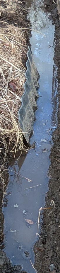 最初に掘った排水側の水路が崩れかかり、幅が微妙に広くなってきたため