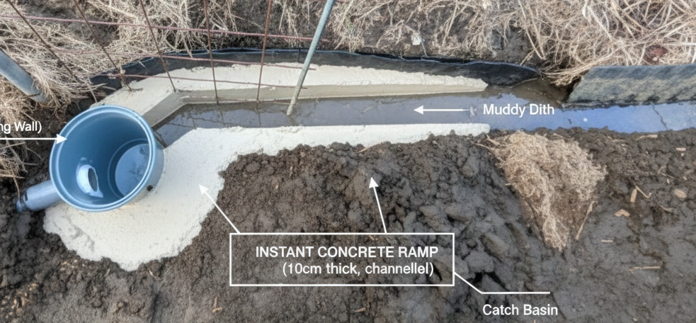 しっかり勾配が取れない立地であり、下手すると排水側から逆流の可能性もある