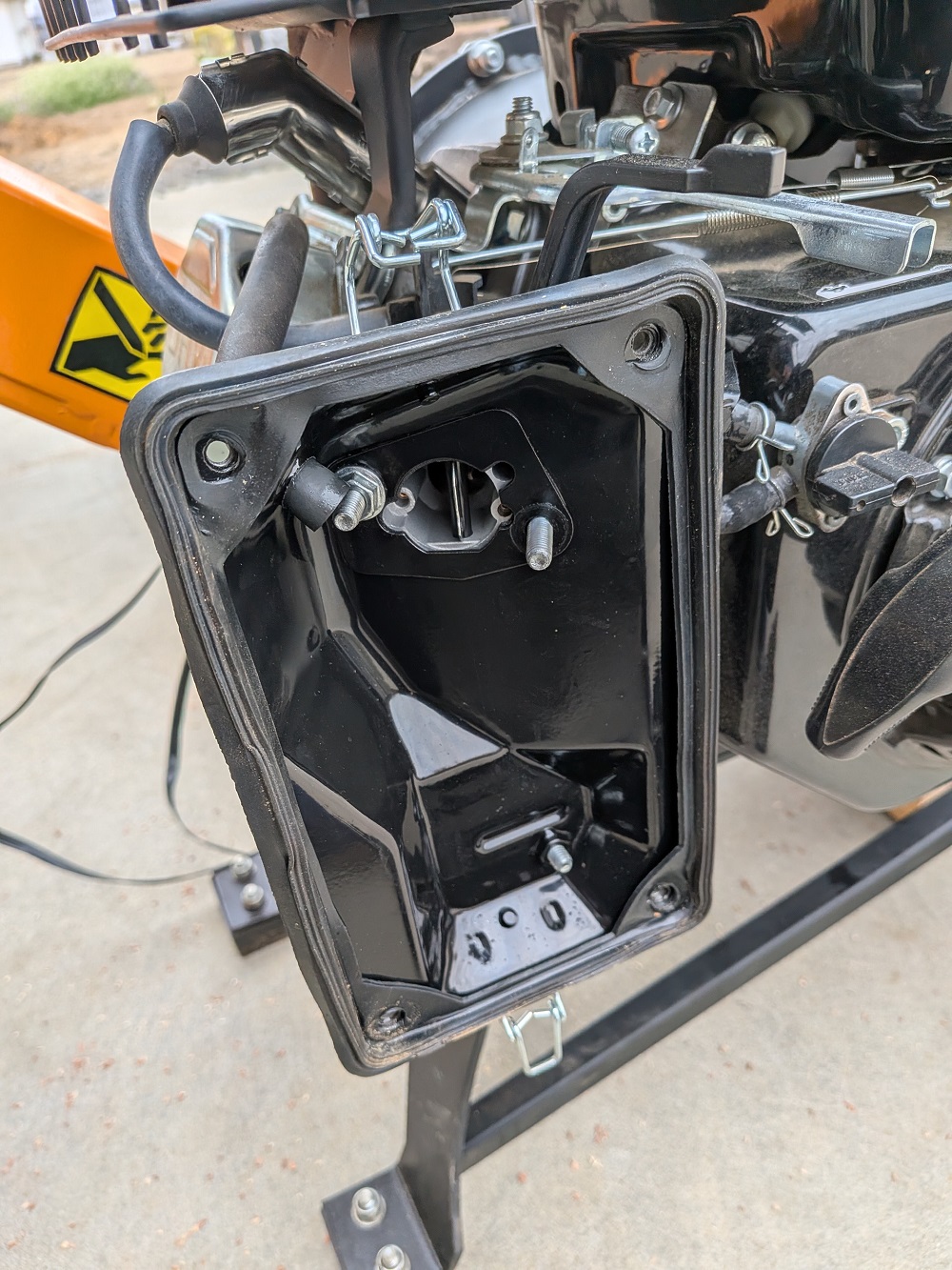 エアフィルターが外れたら、あとは公式動画と同様の手順です。リコイルスターターを固定している四方のボルトを外していきます。