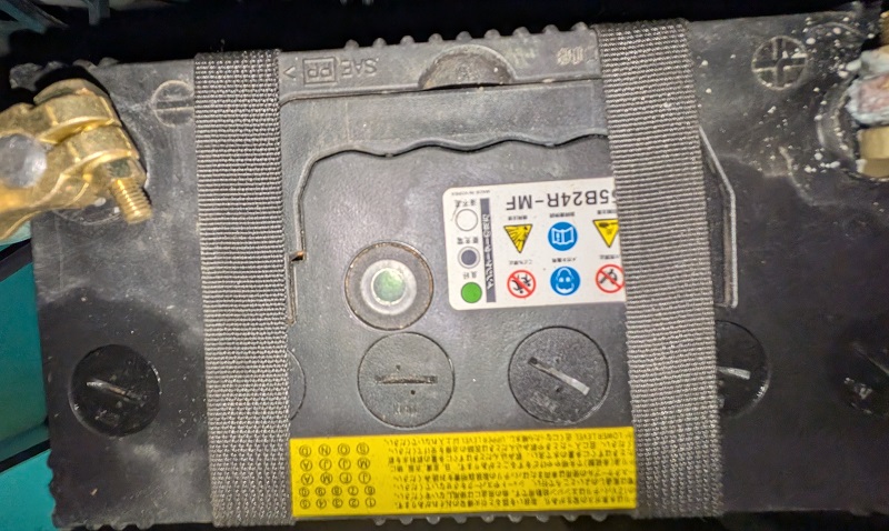 - バッテリー本体は劣化が進んでいたので、純正55B24Rから70B24Rに容量アップして新品に交換