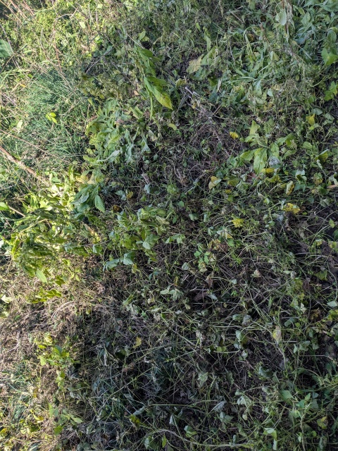 (先日のクズ撃退用に使った除草剤の余りを散布しています)