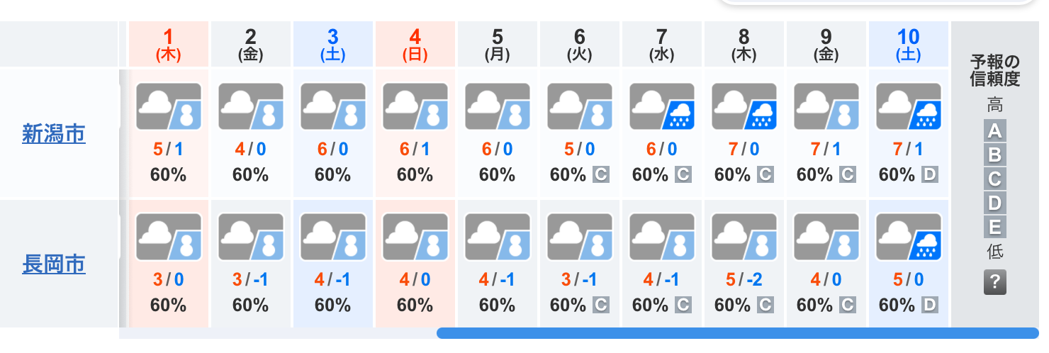 ただ、比較的マシなのは最高気温です。5度以上あれば積もり続けることはないですから、仮に降ってもすぐ解けます。