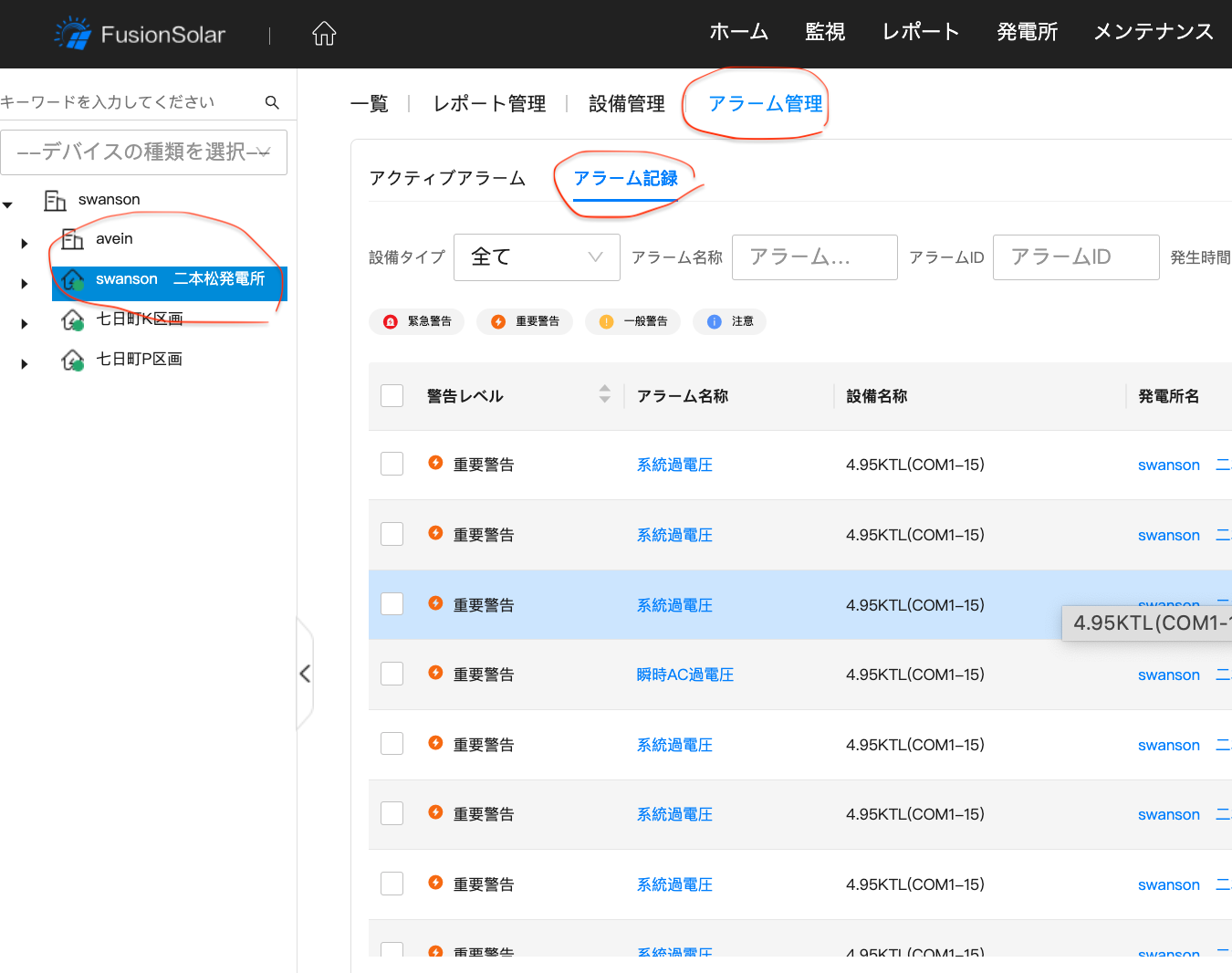9月22日からこの系統過電圧、瞬時AC側過電圧という症状が出まくっていました。