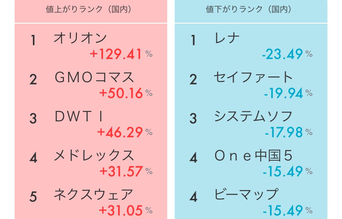 日経平均株価 3営業日連続で最高値更新 2025年9月25日 (カテゴリ: 未設定) ツイート 日経平均株価、円安を背景に3営業日 連続で最高値更新しました。 結局、オリオンビール初値1,863円で 買い注文が殺到、公開価格の2倍超に 終値は1,950円となりました。 値上がりランキングも日本の上場して いる全銘柄中1位に。 オリオンビールの時価総額も公開前は、 350億円でしたが結局800億円越えに。 オリオンビール、ビールも美味しく 株価も上昇して良かったです。 二の矢結果(株の運用成績) 9/25 -355,596円 « 前の記事へ 次の記事へ » ツイート 関連記事 4試合連続は、初 たった今、大谷翔平選手がホームラン を打ちました。 4試合連続ホームランは、メジャーに 来て初だそうです。 3試合連 記事を読む 良いお年をは、今日まで。大晦日に使ってはいけない。 おはようございます。 よく年末に、良いお年をと言って 挨拶しますが、この言葉ふつう大晦日 に使ってはいけないのだか、あまり 記事を読む エミリア・ロマーニャ 開幕 いよいよ今日開幕ですね。 欧州ラウンドの幕開けを告げます。 少しでもフェラーリやマクラーレン 、メルセデスがレッドブルに近 記事を読む ご褒美 今日は、子供の大学のアパートを契約 しに車を700km走らせました。 少しハプニングもありましたが。 大学も初めて 記事を読む 世界初 AI搭載太陽光パネル設置ロボット おはようございます。 アメリカで、人工知能を活用した 太陽光パネル設置ロボットが登場 しました。メガソーラーの施工期間 記事を読む 宙を舞う大クラッシュ! 今朝方あった、エミリア・ロマーニャGP の予選Q1で、角田裕毅が開始5分の時点 で宙を舞う大クラッシュをしました。 まさか 記事を読む 東電と仮想発電所 まず都営住宅から美術館へ 東京都 おはようございます。 東京都は今年の夏をめどに、都有施設 の太陽光発電設備や蓄電池をネット で一体管理する仮想発電所を稼働 記事を読む 急遽、明日から三重県へ 急遽、明日から三重県に行く事に なりました。急遽と言っても決めた のは、日曜日。理由は、小田和正の コンサートチケットが取 記事を読む 市内観光して来ました🎵 暑い! 一言で言ってめちゃくちゃ暑いです。 また今日も車と原付バイクの運転と クラクションの音が凄すぎる! 記事を読む 米政府、太陽光関連の国内生産を後押し おはようございます。 nyダウ一時700ドル超えの大幅な 値下がりしましたね。しかも エヌビディアがAmazonを抜いて 記事を読む コメントを残す コメントをキャンセル コメントを投稿するにはログインしてください。