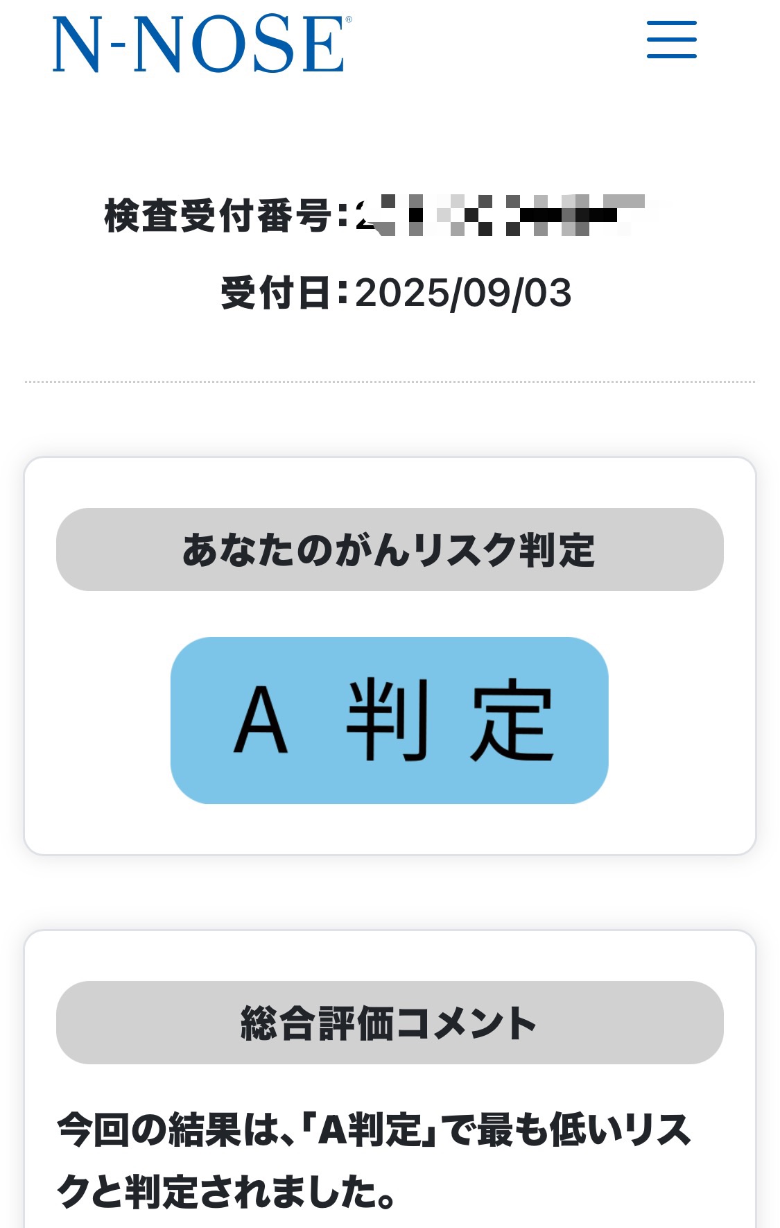 判定結果 2025年9月30日 (カテゴリ: 未設定) ツイート おはようございます。 N-NOSEの検査結果が届きました。 検査結果が出るまでに1ヶ月以上 かかりました。この検査結果は、 10代の子供のです。子供がもし癌 だと若いし、進行も早いので、 こう言うキット検査で、もし早期 発見出来ればと思って、子供にも 毎年検査しています。 一応23種類の癌に対応しています。 A判定だったので、安心しました。 « 前の記事へ 次の記事へ » ツイート 関連記事 住民説明会 おはようございます。 ルーティンの大谷翔平選手の試合。 早速2点タイムリーのツーベースを 打ってくれました。明日は大谷選手 記事を読む 発電所に来ています。 おはようございます。 今日午前2時から大谷翔平の試合を 観戦した為、早起きと言うかほぼ 徹夜してしまいました。残念 記事を読む 紅白歌合戦 今日、年末にある紅白歌合戦の 抽選発表でした。 結果は、‥ 残念! またチャレンジします! 記事を読む アパート申し込み 今日、アパートを申し込みました。 寮に入れればいいなと思ったので すが、見事に抽選で落ちました。 とは言え、約500人中1 記事を読む 【速報】実物大ガンダム「万博」に展示へ 関西万博全く興味無かったがこの ニュース速報を見て俄然興味が わいてきました。大阪・関西万博に 出展される機動戦士ガンダム 記事を読む 顧問税理士から呼び出し 先程税理士の所へ行って来ました。 昼過ぎに今日来て欲しいと電話が。 行くと保険解約の一時所得の件で 30万オーバーの申告所 記事を読む 今から発電所へ おはようございます。 昨日、夜九州から無事に帰ってまいり ました。やはり500kmあるので疲れ ました。 今からパワ 記事を読む ビックニュース トヨタと提携 おはようございます。 ビックニュースが飛び込んで来まし た。トヨタがハースと提携したと 言うニュース。世界中を駆け巡り 記事を読む 太陽光、違法伐採支援措置停止 経済産業省は4月から軽度の違反 でも再生可能エネルギー事業者 向けの支援措置を停止できるよう にすると。確かに急な斜面とか 記事を読む 妻と久しぶりのランチ 妻と久しぶりに、ランチに来ました。 市内一と噂のカレー店に。 10組以上並んでましたので、結構 待ちました。子供は、進学校 記事を読む コメントを残す コメントをキャンセル コメントを投稿するにはログインしてください。