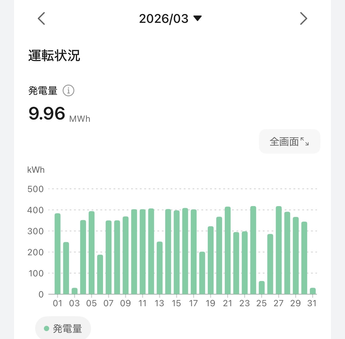 先月までとは大きく異なり、春並みの発電量です