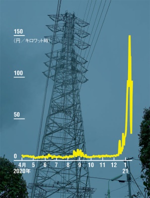 今回の寒波以前に付けたJEPXの最高値は、原子力発電所停止などが響いた2012年1月31日の1キロワット時32.59円。その値を、20年12月26日に超えた。卸値の上昇は続き、21年1月13日にピークの154.57円となり、前年同日の21倍にも上った。