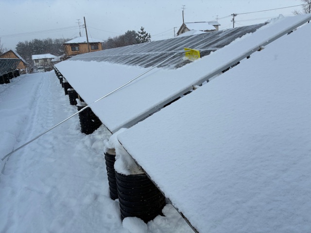 二日で1万円!!徐々に労賃が発生してきた! 2026年1月26日 (カテゴリ: 野立てソーラー雪かき) ツイート 1月25日の作業です! マイナス気温なので、雪がとっても軽い!! パネル裏落としでパネル下への落雪削減できます! 今季は、湿気雪が多く、裏側に落せなかったのですが、 久々のパネル裏落としです!! 売電の方は、23日の発電が4500円、24日が5500円 やっと労賃が発生してきました! しかし、作業途中にパラパラと雪が降ってきたので、 しばらく、売上の期待は出来そうにないでしょう!! « 前の記事へ ツイート 関連記事 一人親方に厳しい冬! 今日(12月23日)は、久々に厳しい1日となりました! パネルの雪降ろしまで到達できませんでした! 周りの景色を見ながら 記事を読む 今日の労働!対価4950円 卒 ICカードリーダでetax!スマホで認証! etax医療費マイナポータル連携断念!! e-Tax 送信で確定申告の完了!! 帳簿・ 記事を読む 除雪 円弧滑り押込み工法の勧め!! 大雪の日本海側や北海道! 大雪の雪かきは、非常に重労働です! 身体を気遣いながら頑張ってください!! 記事を読む 2026明けました!仕事初めができるか? 2025年末寒波が到来しましたが、仕事納め(雪下し)げできていません! 2026年1月1日は、マイナス6℃で明けました! 記事を読む 仕事のモチベーションを上げる方法! 今日もパネルに雪が積もってます! 昨日も5cmを超える積雪でしたが、モチベーションが上がらず、 発電所の除雪をしませんで 記事を読む まだまだぁ~~! どすこ~い! 押し続けます! e-Tax QRコード認証 失敗例 e-Tax データ保存方法 昨日も今日も連日の積雪15cm越え! パネル下の雪山を押し散ら 記事を読む 根性の雪かき! 雪ネタしかありません! すみません! ここんとこ、雪ネタしかありません! 2日以来のパネル全面発電にこぎ着けました! 足腰フラフラです。3 記事を読む 発電所の除雪始め!! 昨日は、天気予報が大外れで晴れてきました! まだ11月なので解けるだろうと思いながら、 念のためパネル下の雪山を 記事を読む 人力作業も限界が近くなって来た!! 発電所に入ることができません! 2月7日の発電所入口です!! 写真の様な氷の塊の除雪が、身体に響きま 記事を読む 送電できない4日め!!働いて働いて働いて働いているのですが 昨日(1/22)は、このパネルの雪を落としましたが、 パネル面が凍結でほぼ発電なし 1月20日が19kw、21日が16k 記事を読む コメントを残す コメントをキャンセル コメントを投稿するにはログインしてください。