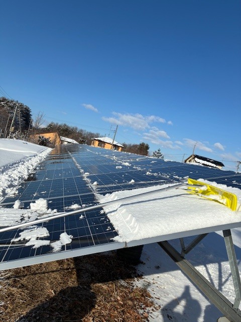 22世帯分に送電開始! 2026年2月13日 (カテゴリ: 野立てソーラー雪かき) ツイート 本日8:30に作業開始、8:50に一列の雪を撤去 9:20には全面の発電復帰となりました! 4kw/hが7台 2.8kw/hが2台 合計 33.6kw/h 我家でこの時間帯に1.5kw/hを消費していましたので、 これで計算すると 22.4世帯に送電 « 前の記事へ ツイート 関連記事 今季の冬は仕事が続かない! 昨日(1/15)は、雪下し作業をしましたが、 今日(1/16)は作業無しです! 天気は、昨日朝から晴れています! 記事を読む 湿気雪が凍結でパネルに抱き付き! 前日の湿気雪が、夜間の氷点下で凍結! 朝方の降雪で太陽光が遮られており無発電の朝です! 湿気が強いので落雪を期待していましたが、 記事を読む 今日の労働!対価4950円 卒 ICカードリーダでetax!スマホで認証! etax医療費マイナポータル連携断念!! e-Tax 送信で確定申告の完了!! 帳簿・ 記事を読む 体調管理が難しい寒暖差!腰痛発生 先日の大雪の影響が2,3日してから出てきました! 腰が抜ける様な痛みが発生! 悪化する前兆が分かるようになっているので、 記事を読む 寒気でパネルが凍結! 今朝(1月16日)の最低気温がマイナス8度! 寒気が来ました! 前日にパネル面に薄っすら積もった雪が融雪してそのまま凍結 記事を読む 今日も仕事で充実の1日! 本日(1月5日)は、午前に発電所の雪下しと除雪、午後は自宅屋根の雪下しとなりました! 自宅は、元旦以来の発 記事を読む パネルが”たわんでいる”重い雪の影響! 毎年の雪の影響でパネルの「たわみ」が少しづつ増加傾向にあるようです! 年に2,3回の湿気の多いドカ雪! 上の写真の中ほど 記事を読む 各地から初雪の便り、今年の除雪道具! 全国各地から初雪情報が、報道されています! 今年の除雪シーズンを前に、除雪道具の点検です! 体力、経費、投資効果などいろいろ検討 記事を読む 1月売上が切れても仕事が切れない!! 1月電気2万2千円節約できました!50%節電 12月の電気2割削減も支払増でトホホホ!! 卒 ICカードリーダでetax!スマホで認 記事を読む 危険を感じる重たい雪!! 今日(2月14日)の雪は、パネルに危険を感じる重たい雪! 厚さ10cm程度なので、簡単に雪を落とせるだろう 記事を読む コメントを残す コメントをキャンセル コメントを投稿するにはログインしてください。