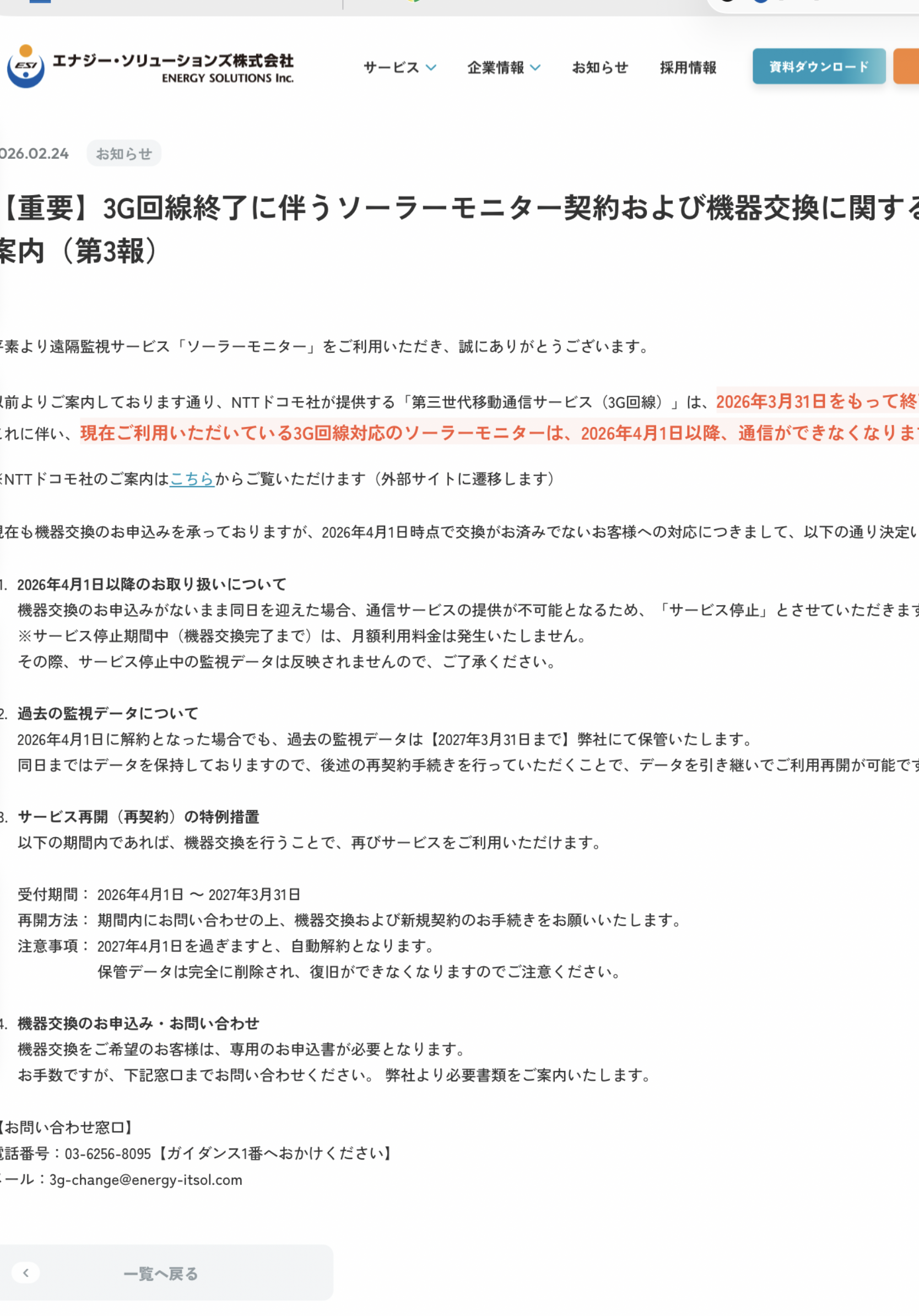 エナジーソリューションも4g切り替えの猶予期間を向こう一年間設けている。