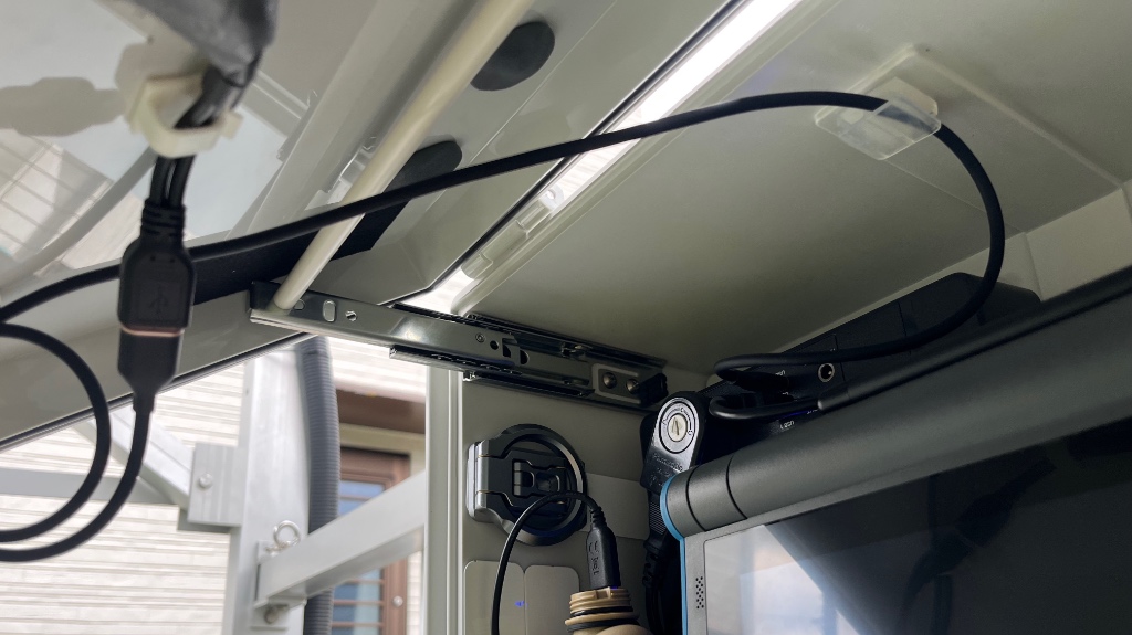 見づらいですが、この状態で扉裏のケーブルをポータブル電源もしくはモバイルバッテリーに接続して充電を行います。