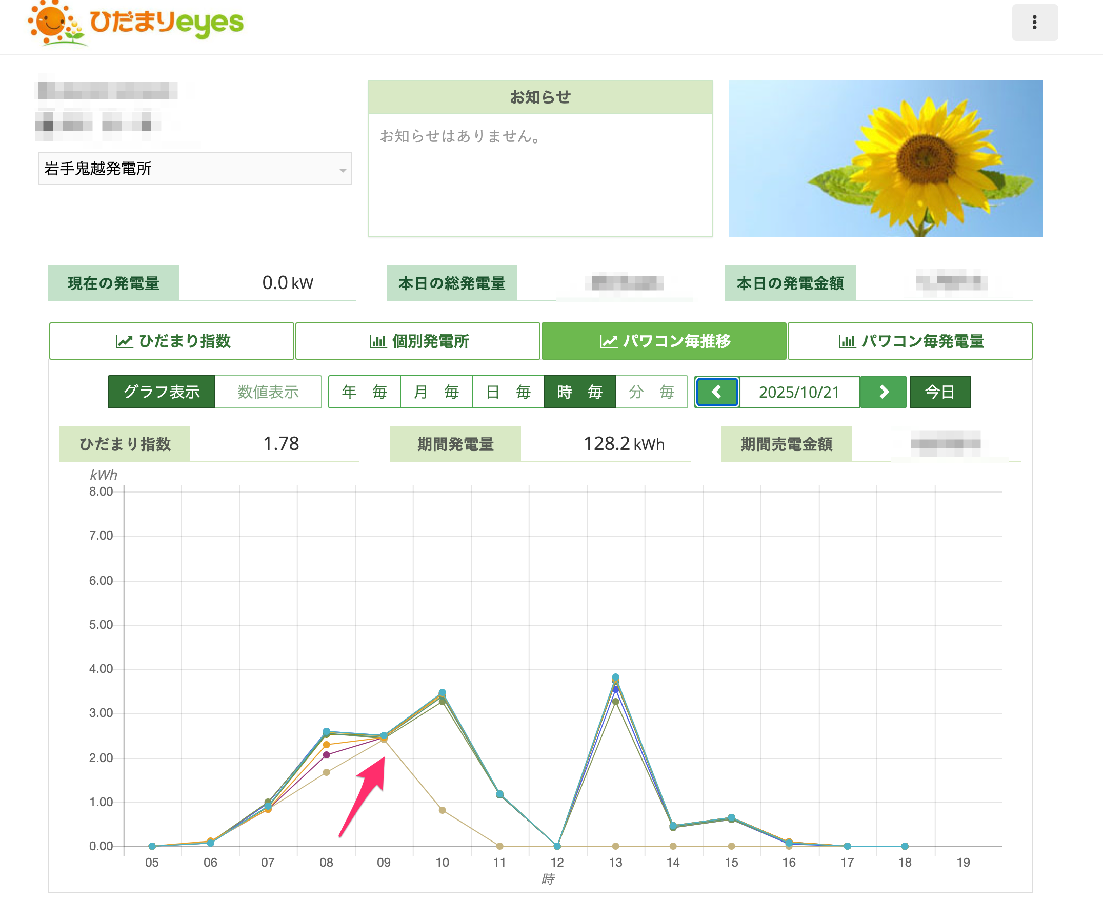 鬼越発電所、PCS故障・・これで最後か? 2025年10月26日 (カテゴリ: 太陽光発電システム関連記録, 第3発電システム(鬼越)) タグ: O&M ツイート 先日、鬼越発電所のPCS ID03が故障・・いつものように突然出力が下がってゼロになります。 今年何台故障したのか数える気力もありませんが、これは故障では無く不良では無いか?と思ったりもして。 続けて何台も故障すると損失も馬鹿になりません。 これから冬場に入り降雪も予想されるでしょうから、とにかく早く修理をしてもらい、日照が期待できる来春に備えたいものです。 « 前の記事へ ツイート 関連記事 グランドカバーのはなし(中井発電所編) その9 グランドカバーとして投入したシロツメクサ。前回のチェックで、他に草に押されぎみだったので、追加で種を散布しました。前回と同じ要領で、増量剤の 記事を読む 2020年7月発電実績 2020年7月度の月間実績を紹介します。 7月は異常な長雨によって各発電所ともに大きくシミュレーションを下回る結果となりました。ようやく梅 記事を読む 太陽光発電システムの保険について その1 自宅裏の太陽光発電システムの稼働を機にシステムの保険を検討することにしました。 調べてみると太陽光には、企業総合保険の財産補償が適用出来そ 記事を読む 増やすんです。(中井発電所編)その2 資金面で不安があったので、躊躇していましたが、増設を実行することにしました。 見積書を見ると太陽光パネルは、発電所を設置した時の価格の45 記事を読む 新電力、マイニング事業参入 地域電力会社、熊本電力がマイニング事業に参入するという記事を見つけました。 昨年、Looopが、仮想通貨のマイニングを行う事業者向けの料金 記事を読む 地域誌で二宮電力の取組みを紹介 地元のタウン誌にお隣、二宮町の地域電力の取組みが紹介されました。 以前の記事はこちら、(二宮電力のエネルギー講演会を聞いてみた) 記事を読む 雪国のメガソーラー 新潟県営メガソーラーにおける冬季運用方法について、興味深い記事が掲載されたので、紹介したいと思います。 自分の所有している発電所以外の 記事を読む ソーラーシェアリング国府定点観測 その92 本日は、除草作業の予定でしたが、雨天のため順延です。 ソーラーシェアリング国府圃場のコンパニオンプランツ、ビワ『涼峰』の実がだいぶ大きくな 記事を読む アメリカンフェンスを活用する その2 土日休日を使って、中井発電所東側にアメリカンフェンスを使用しフェンスを増設しました。7メートルほどを施工しました。現物合わせで杭を打ってフェ 記事を読む オプティマイザ、トラブル? その2 (オプティマイザ、トラブル? その1)でソーラーシェアリング国府で導入しているオプティマイザのうちの1台の動作に不具合があることを紹 記事を読む コメントを残す コメントをキャンセル 名前 メールアドレス ウェブサイト コメント(必須) 次のHTML タグと属性が使えます: <a href="" title=""> <abbr title=""> <acronym title=""> <b> <blockquote cite=""> <cite> <code> <del datetime=""> <em> <i> <q cite=""> <s> <strike> <strong>