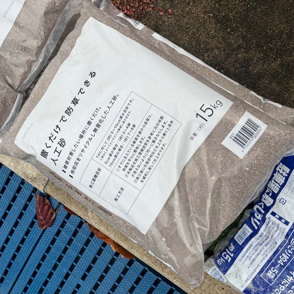 こちらは、テスト用に購入した『撒くだけで防草できる人口砂』。
