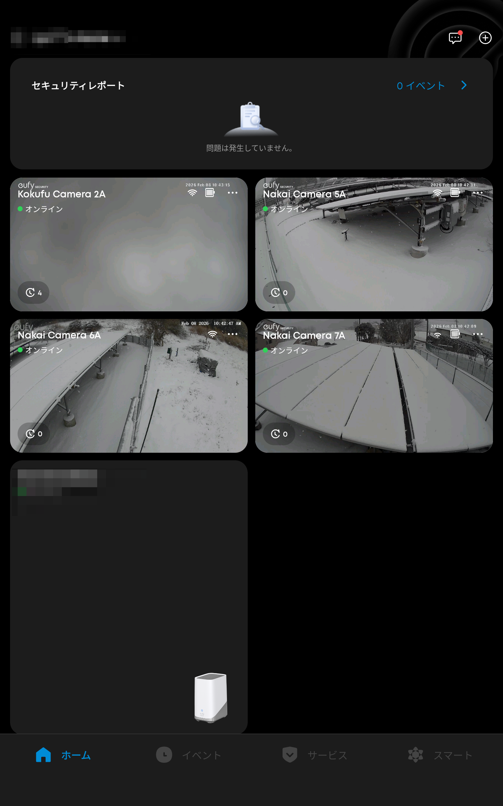 監視カメラ群は、着雪無く確認可能です。