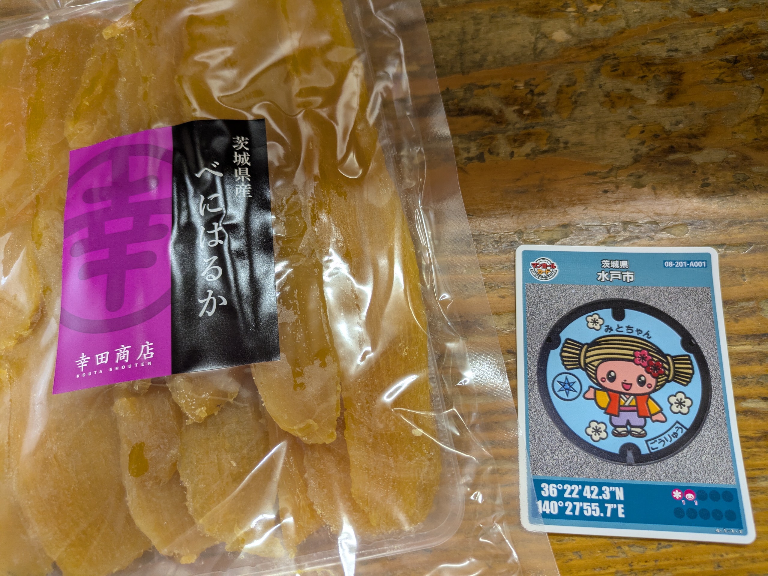 お土産は、「幸田商店」の干し芋とマンホールカード