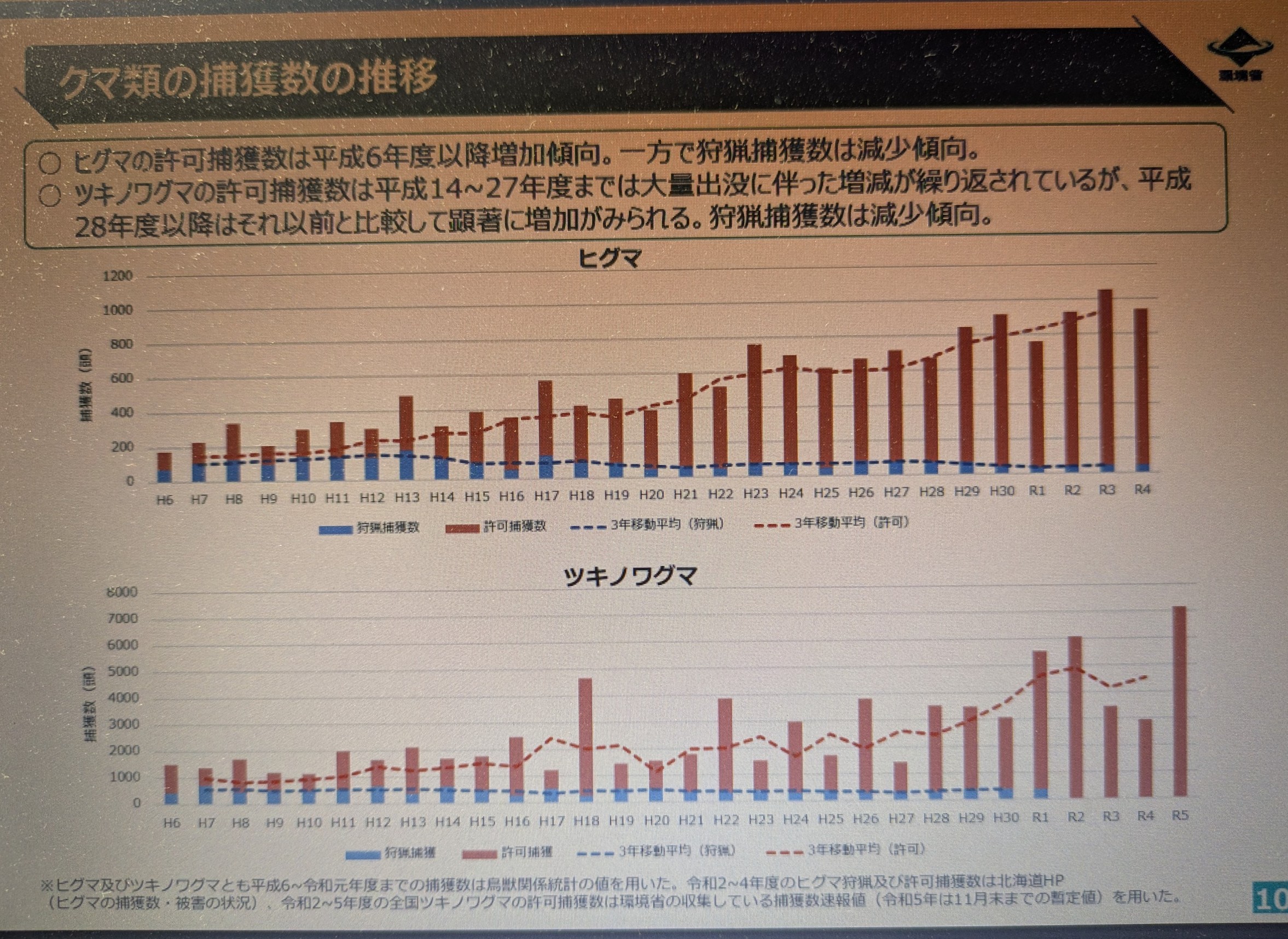 一方、メガソーラー級発電所の累積数の増加(←生息地域の減少??)にもかかわらず熊の個体数は増えているようで、駆除許可件数に実際の駆除件数が追い付かない状態となっている。