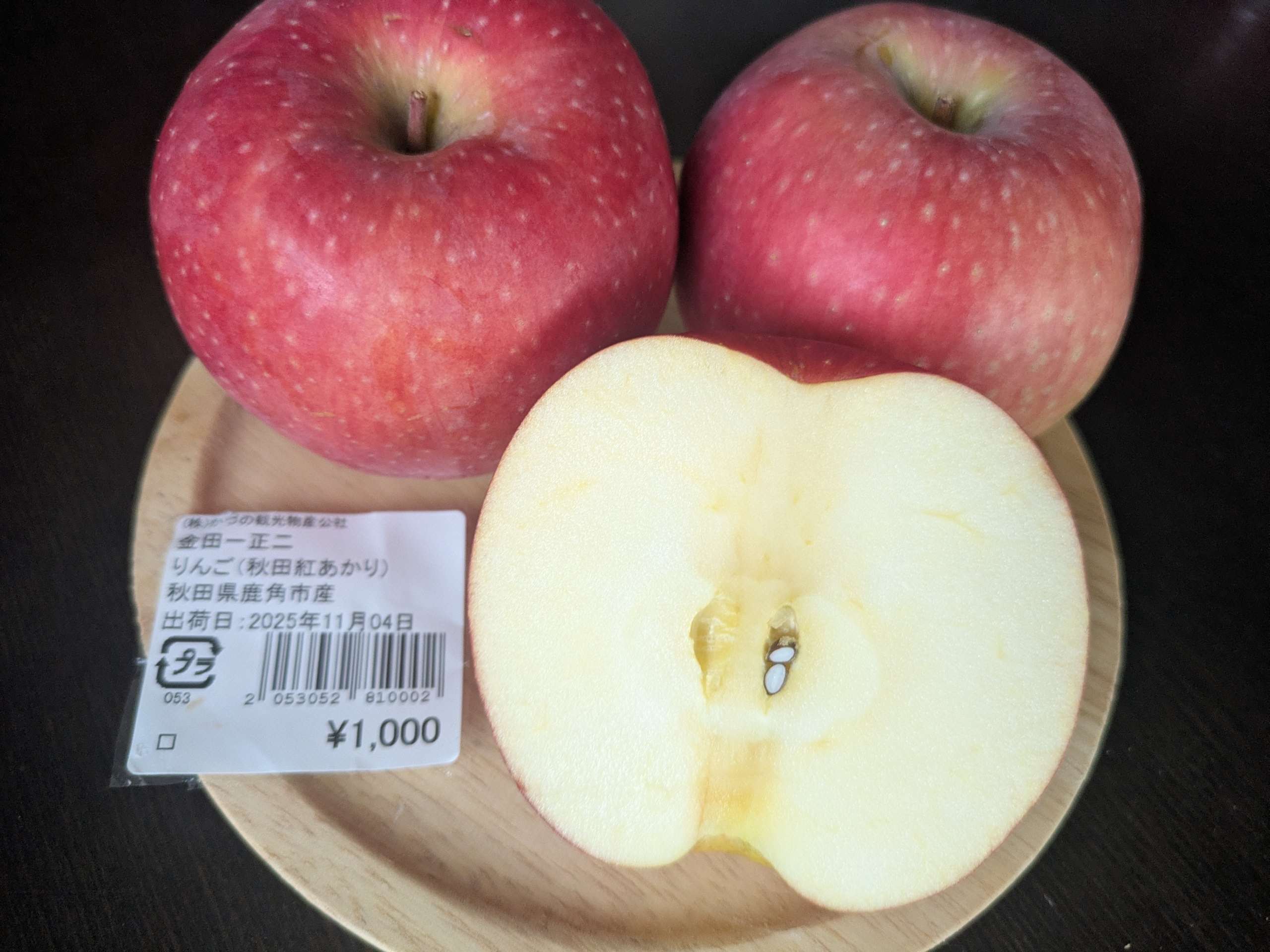 昼休憩で寄った道の駅かづので、初めて聞く「紅あかり」というリンゴを買ったらこれが激うま!